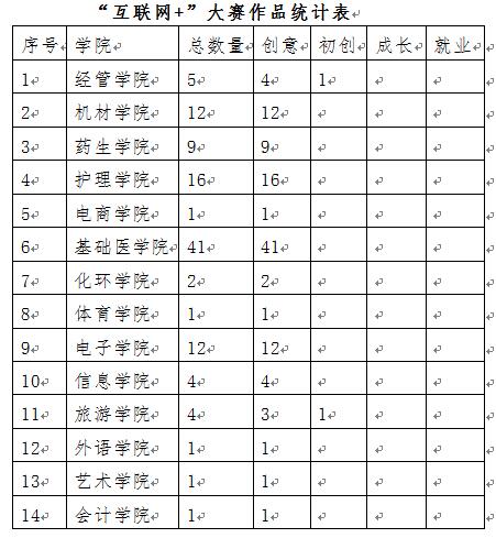根据省教育厅《关于举办第三届江西省“互联网+”大学生创新创业大赛暨全国大赛选拔赛的预通知》(赣教就办字〔2017〕5号)的精神,我校组织了“互联网+”大学生创新创业大赛校内选拔赛,截止2017年4月26日下午,网报110项,具体情况如下: