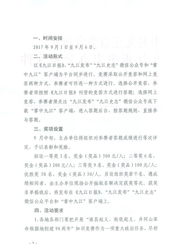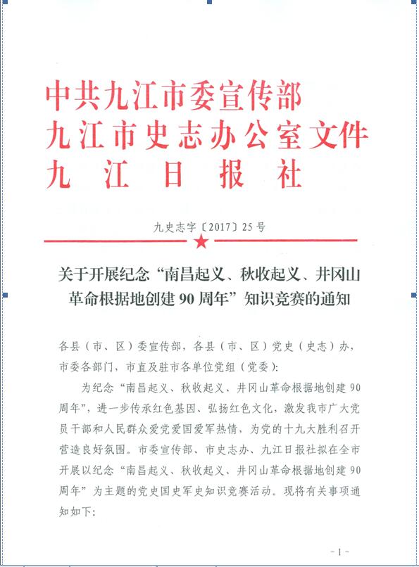 关于开展纪念“南昌起义”、“秋收起义”、“井冈山革命根据地”创建90周年知识竞赛的通知