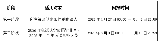 第一阶段(对应4月27日—5月8日网报):2026年5月11日 — 5月18日(上午8:00-11:00,周日除外)