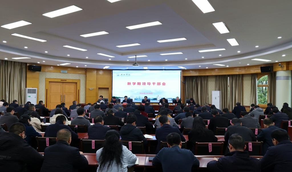 春为岁首启新程,行以实干开新局。2月28日,九江学院新学期全校领导干部会议在学校行政楼四号会议室召开。校党委书记李明斌出席会议并讲话,党委副书记王殿元主持会议,党委委员、副校长查振华对新学期和今年重点工作进行部署。校领导鲁卫东、雷志强、刘波、吴维勇,党委委员刘平、杨杰、肖国丰出席会议。