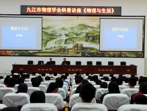 利用本次会议时间,市物理学会秘书长、九江学院理学院余剑敏老师为修水一中高一学生作了《物理与生活》的科普讲座,与同学们分享了物理中的力、热、电、光方面的知识在生活中的应用及现象的解释等,讲座内容紧围生活中的物理知识,深得同学们喜爱。