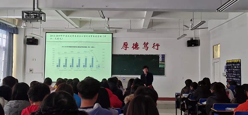 12月10日下午,王万山副校长来到经管学院,以“中美贸易战的背景、本质及走向”为题,为该院国际经济与贸易专业学生讲授了一堂生动的思政课,100余名学生聆听了此次思政课。