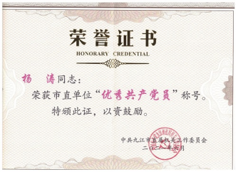 近日,中共江西省委教育工委授予了100名同志为“全省教育系统优秀共产党员”荣誉称号。其中,江西省“千人计划”——科技创新高端人才项目入选者、我校化学化工学院杨涛同志被授予“全省教育系统优秀共产党员”称号,同时,他还被授予了九江市2021年“市直单位优秀共产党员”称号。