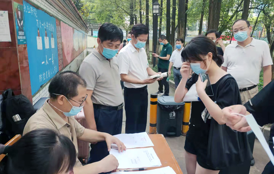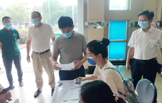 8月29日上午,校纪委书记李广欣来到庐峰校区,检查督导学生返校报到工作,附属医院负责人陪同检查。