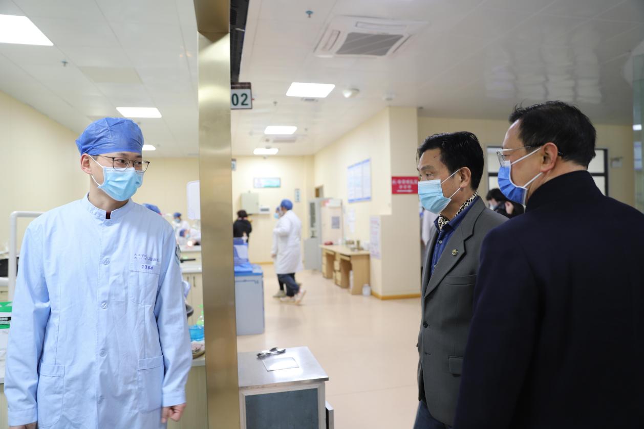 杨耀防来到门诊各科室,实地查看了临床设施配备及工作环境,并与医护人员亲切握手、交谈,对临床日常工作情况进行详细地询问,对大家一年来的辛勤付出表示感谢。他叮嘱医护人员要坚持“以患者为中心”的服务理念,不断精进业务能力,做好优质服务,并鼓励大家保持勇于拼搏的斗志、昂扬向上的精气神,新的一年再创佳绩。他还勉励实习医学生积极备战考研,奋勇争先。