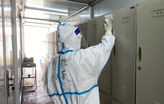作为这支护理队伍的领头人,殷美霞深感自己的担子沉甸甸的。曾在武汉方舱医院就担任组长的她工作经验丰富,“辣妹子”化身为贴心“老母亲”,总能听到她不停叮嘱队员们:“注意,不要把内层帽子漏出来”“舱内回来记得手消”“大家保持安全距离”……在她的带领下,舱内医疗护理工作逐渐步入正轨,大家每日有序完成患者生命体征测量,核酸采集、发药等医疗护理工作,同时发动志愿者协同管理,发放一日三餐,做好日常保洁。从4月3日出征以来,她几乎没有好好地按时吃过一顿饭,更没有好好地睡一个完整的觉,每天长时间连续工作,加上电话不断,说话声音都沙哑了,但只要有需要,哪里有困难,她就冲向哪里,在这场没有硝烟的战场上,她诠释了白衣天使的职业精神,为护理队伍做好了表率。