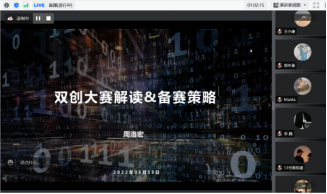 在培训会上,三位专家分别为参训师生作了报告。周洛宏作了《双创大赛解读和备赛策略》的报告,在报告中介绍了中国国际“互联网+”大学生创新创业大赛的重要性,大赛创业计划书的撰写、PPT和VCR的制作、路演答辩等竞赛经验和技巧;江勇重点解读了中国国际“互联网+”大学生创新创业大赛高教主赛道和职教赛道的评审规则,介绍了第八届“互联网+”大赛参赛类型、参赛方式和要求、参赛组别和对象、奖项设置;陈姚详细讲解了大赛青年红色逐梦之旅赛道教育维度、公益维度、团队维度、发展维度、创新维度和必要条件等评分要点。