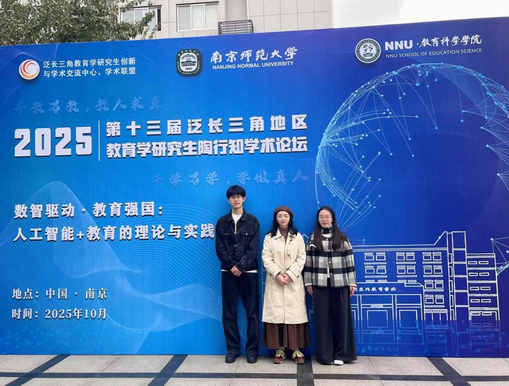 近日,第十三届泛长三角地区教育学研究生陶行知学术论坛获奖名单公布,教育学院“口述史”采集与整理研究团队冉露、廖思、郭伶三位同学的论文《人工智能时代乡村教师践行教育家精神的困境与实践路径》在强毅老师的指导下荣获三等奖。在本届以研究生为主的学术论坛中,他们三位是获奖者中为数不多的本科生,这一成绩充分展现了学校在人才培养方面的扎实基础与突出成效。